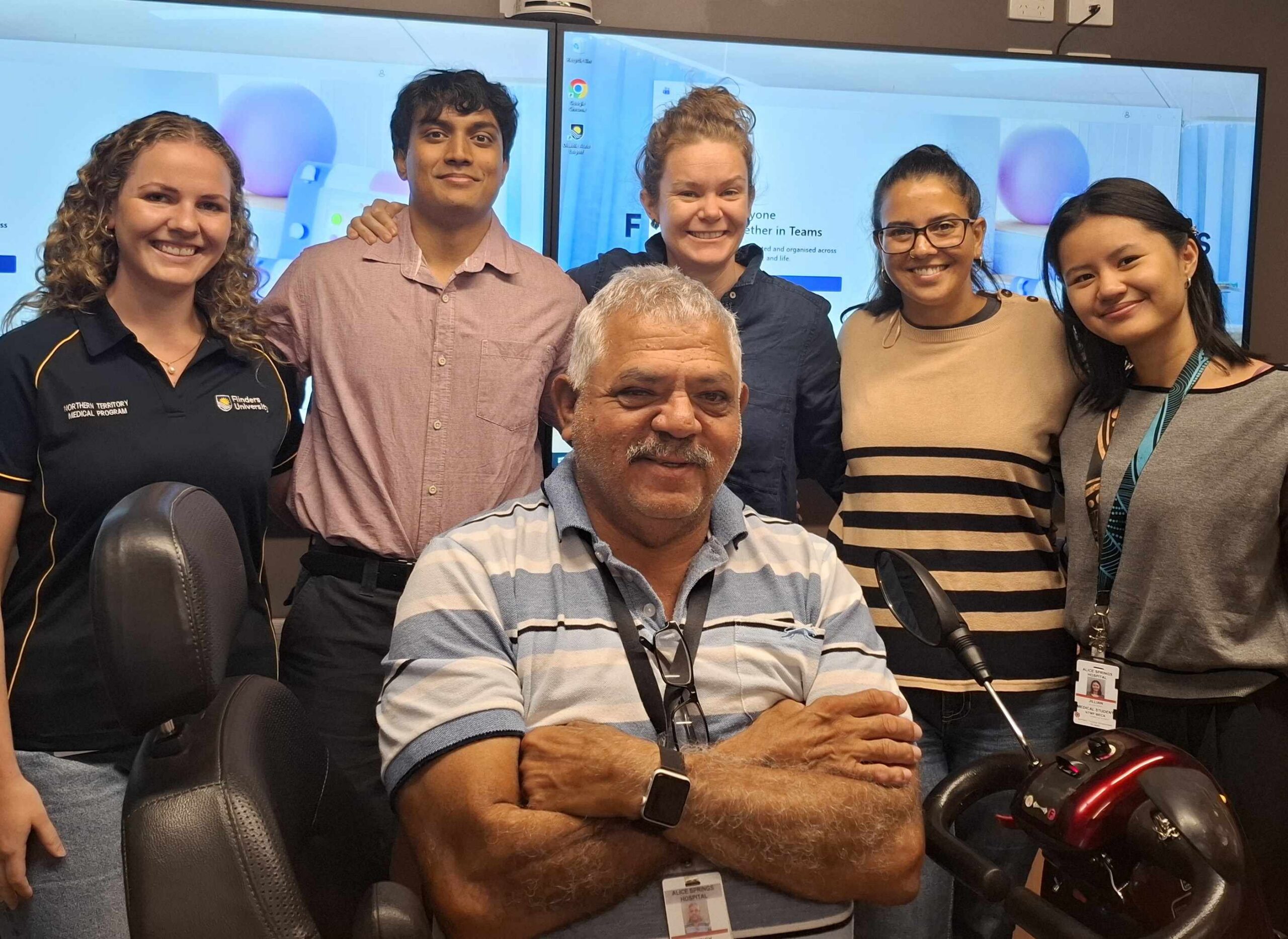 Tiana, Pamila, Claire, Sophie and Jillian Wong with Mr Patrick Torres, from the Utopia community who is as an Aboriginal Cultural Coordinator at Alice Springs Hospital.