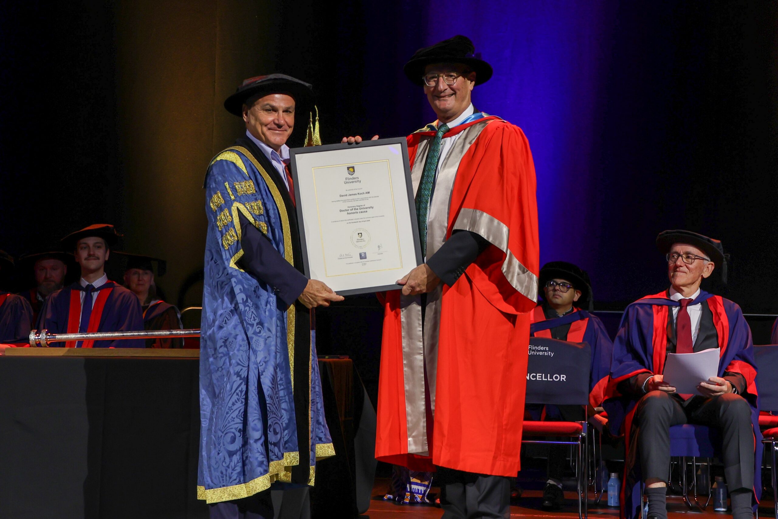 Flinders University Chancellor, Mr John Hood, says: “This is an honour seldom given but richly deserved by David Koch.”